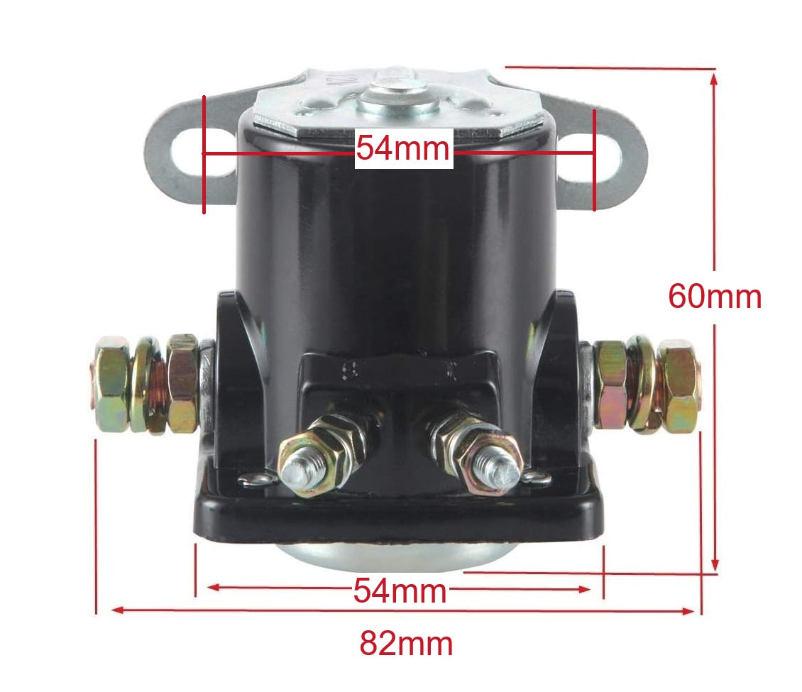 Terminal configuration: 2 large terminals (battery and motor), 2 small terminals (switch and relay)